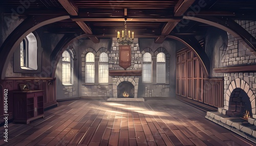 © thiraphon, Obraz premium Illustration of medieval castle hall