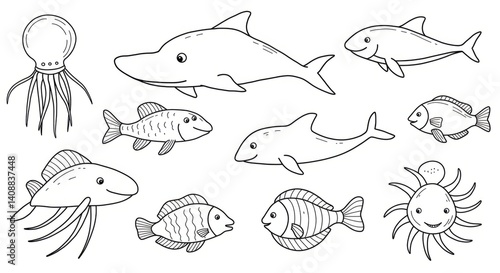 Naklejka premium Illustration Of Ocean Life