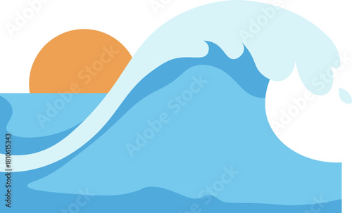Fototapeta premium Illustration of Ocean Waves with sunset vector shape