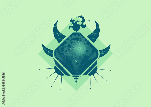Fototapeta premium Illustration of octagon bison face in geometric steampunk style. (Blue & Mint...