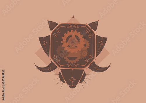 Fototapeta premium Illustration of octagon clock in geometric steampunk style. (Monochrome : Chocolate Color)
