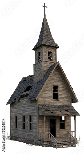 © YardenaZ, Fototapeta premium Illustration of Old Stone Church Building Religious Architecture