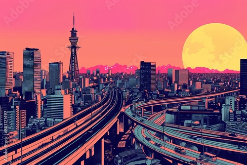 Fototapeta premium Illustration of Osaka City with with vibrant colors