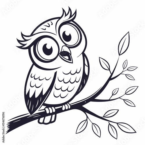 Obraz premium Illustration of owl, vector of a owl setting on a branch