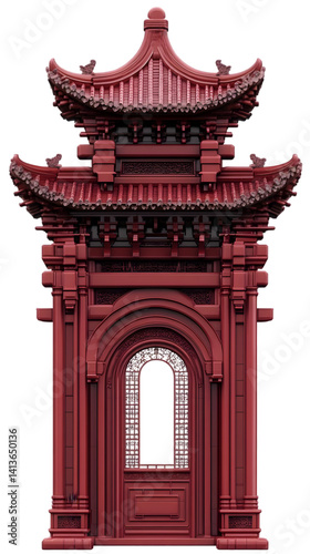 © Siasart Studio, Fototapeta premium Illustration Of Red Asian Pagoda Structure With Ornamental Design Isolated