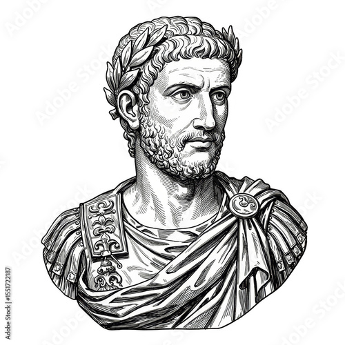 Fototapeta premium Illustration of Roman Emperor Bust with Laurel Wreath Transparent Background