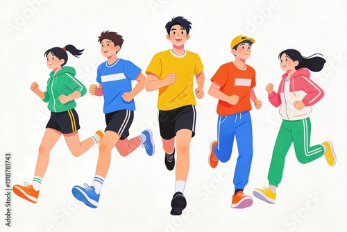 © henvryfo, Obraz premium Illustration of Running Characters for Young College Students