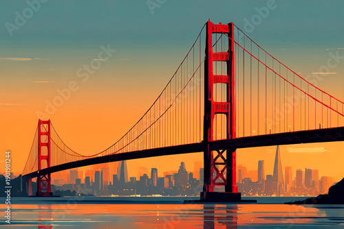 © Eduardo Lopez, Obraz premium illustration of San Francisco's Golden Gate Bridge
