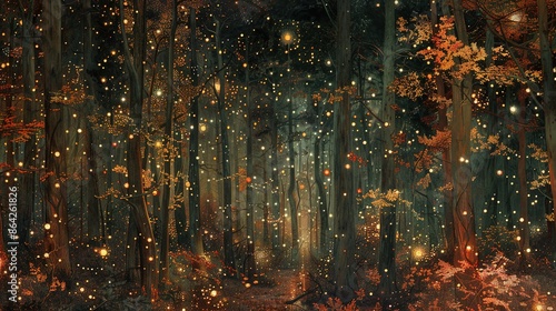 © Erin, Naklejka premium illustration of secret forest at night, landscape background