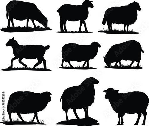 © Seni, Fototapeta premium Illustration of Sheep Silhouette one set