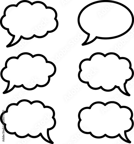 Fototapeta premium Illustration of six speech bubbles with varied shapes on a white background