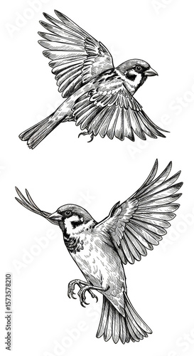 © Abram, Fototapeta premium Illustration of Sparrows Flying With Wings Wildlife on Transparent