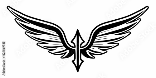 Fototapeta premium Illustration of stylized wings spread wide with a central arrow design in black and white color scheme