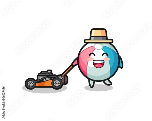 Fototapeta premium illustration of the beach ball character using lawn mower