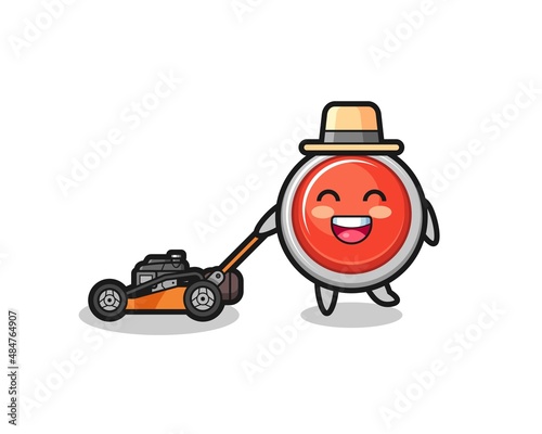 Fototapeta premium illustration of the emergency panic button character using lawn mower