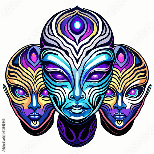 Naklejka premium illustration of the face of a robot with a psychedelic pattern.