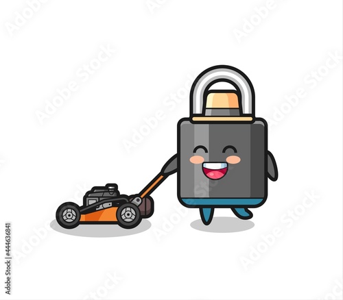 Fototapeta premium illustration of the padlock character using lawn mower