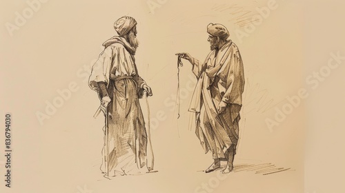 © T Studio, Obraz premium Illustration of the Parable of the Talents, Buried Talent and Master’s Rebuke, Beige Background, Copyspace