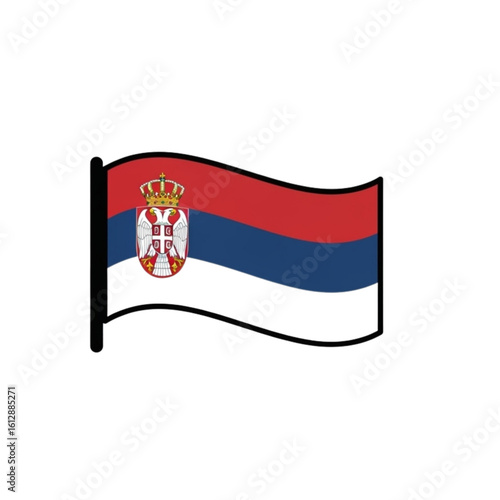 © Bangkit gultom, Obraz premium Illustration of the Serbian flag waving, a symbol of national pride and European identity. Vector graphic of Serbia's national banner.