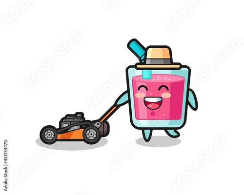 Fototapeta premium illustration of the strawberry juice character using lawn mower