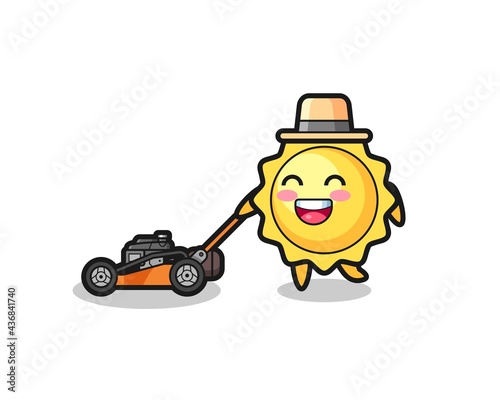 © heriyusuf, Fototapeta premium illustration of the sun character using lawn mower