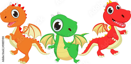© wisnu_Ds, Obraz premium illustration of three cartoon dragon