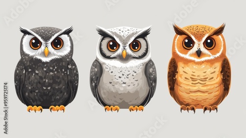 © Sandu, Fototapeta premium Illustration of Three Colorful Owls