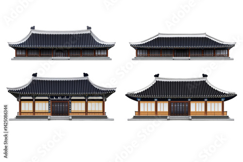 © Kuntil, Obraz premium Illustration Of Traditional Asian Buildings On Transparent Black Background