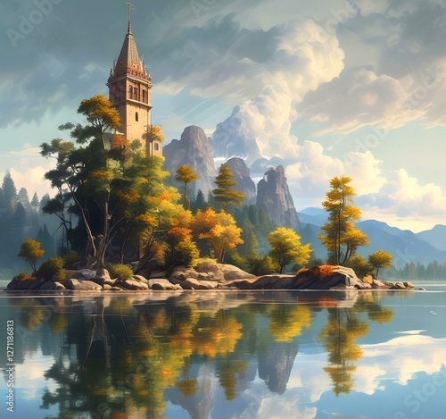 © BetiBup33, Fototapeta premium Illustration of travel landscape.