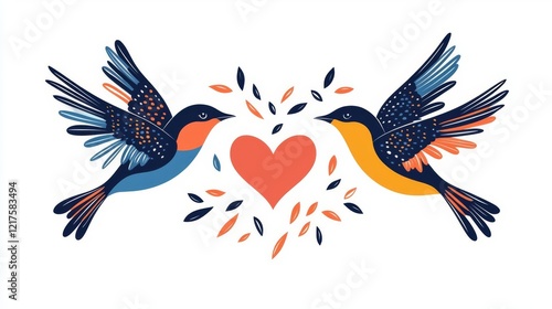 Obraz premium Illustration of two birds symbolizing love and connection.