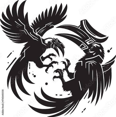 © orion, Fototapeta premium Illustration of Two Black Crows in a Confrontation with Intricat