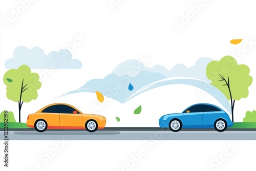 Fototapeta premium Illustration of two cars on the road, representing traffic, driving, and transportation concepts