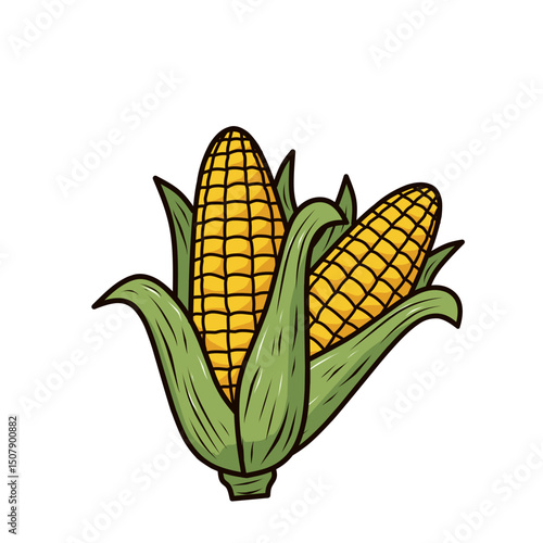 Obraz premium illustration of two corn cobs side-by-side with fresh green husks. Ideal for...