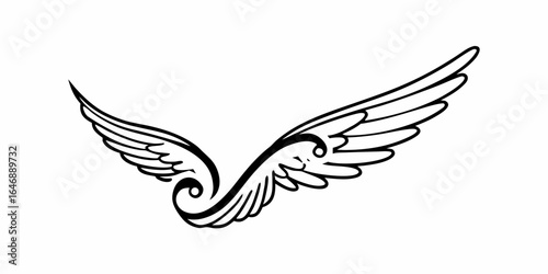 Fototapeta premium Illustration of two stylized wings with detailed feathers and swirling...