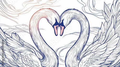 Obraz premium Illustration of two swans with their necks forming a heart shape,...