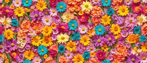 Fototapeta premium Illustration of vibrant spring flowers arranged on a flat background