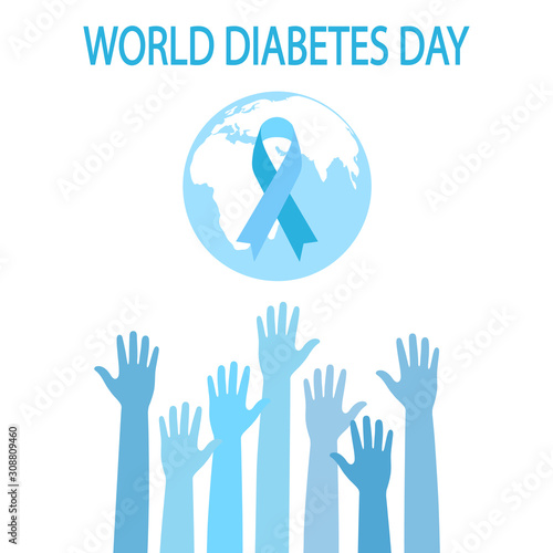 © elena3567, Obraz premium Illustration Of World Diabetes day. Hands asking for help with the globe