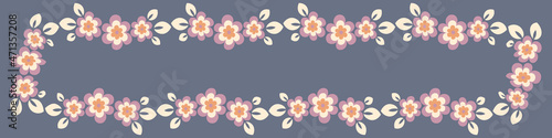 Fototapeta premium Illustration on a sheet of 4x1 format - stylized flowers with leaves - graphics. Banner for text, gift