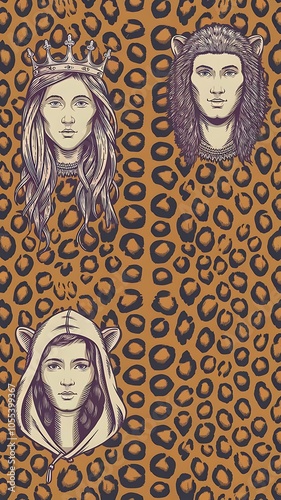 © infinite, Naklejka premium Illustration pattern background leopard skins and two heads