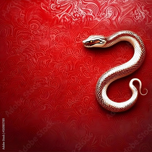 © Siasart Stock, Obraz premium Illustration - Red Abstract Background with Silver Snake
