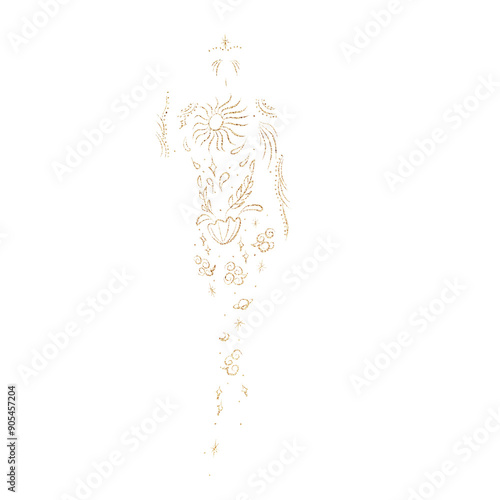 © chikovnaya, Naklejka premium illustration set of moon phases. Different stages of moonlight activity in vintage engraving style. Zodiac Signs
