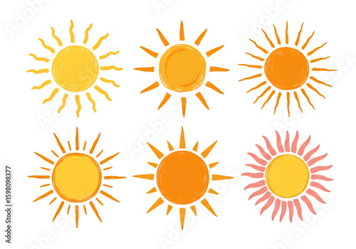 Fototapeta premium Illustration Set of Six Simple Suns on Transparent Background
