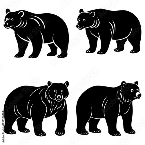 © Lutfor, Fototapeta premium Illustration showing four black bears in different poses with white accents on a white background art design