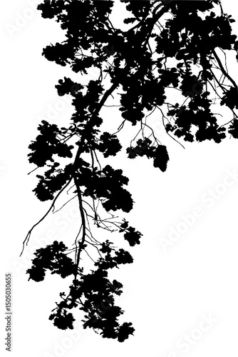Naklejka premium Illustration, silhouette of oak branch on transparent background