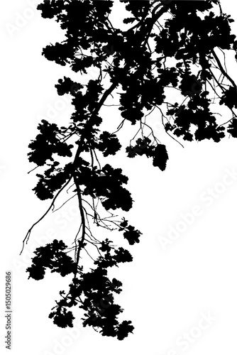 Naklejka premium Illustration, silhouette of oak branch on white background
