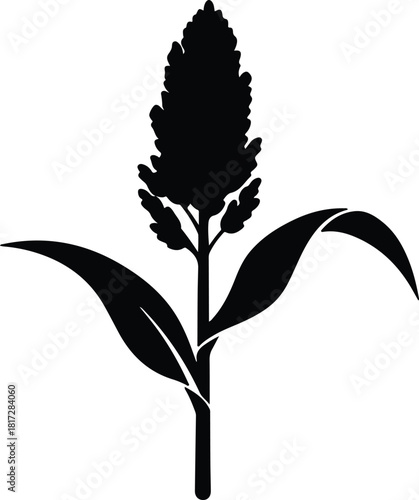 © Nasima, Fototapeta premium Illustration sorghum plant with leaves minimalist black silhouette vector