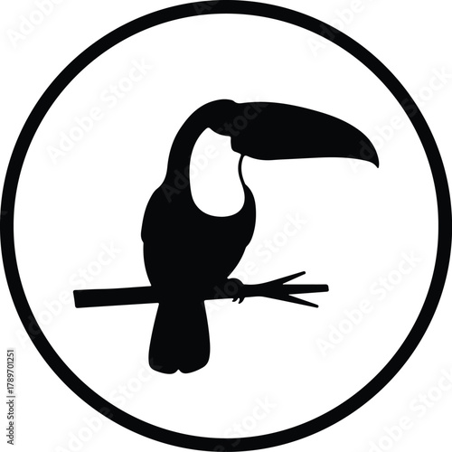 Fototapeta premium Illustration Toucan bird perched on branch black and white silhouette vector