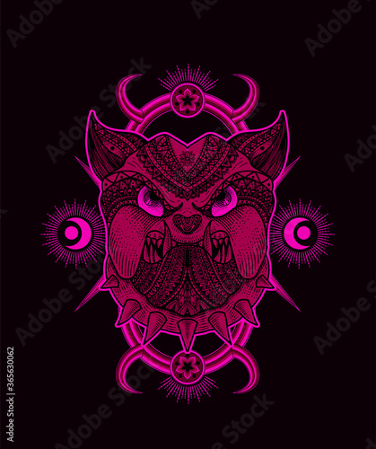 © Bayu, Fototapeta premium Illustration vector Dog head mandala tribal style with sacred geometry on black background.