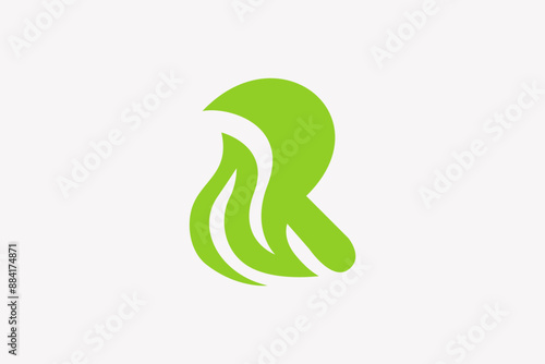 © Sqwrrr, Naklejka premium Illustration vector graphic of letter R green leaf. Good for logo