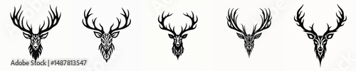 © NineteenVisualStudio, Naklejka premium illustration vector graphic of tribal art deer tattoo